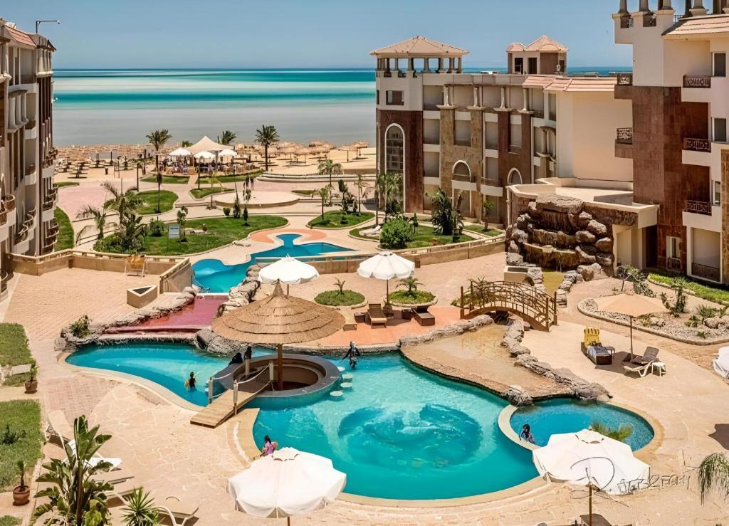 Prime Beachfront Location: Royal Beach Luxury Hurghada in Hurghada offers a private beach area, beachfront, sun terrace, and lush garden. Guests enjoy a year-round outdoor swimming pool and free WiFi in public areas. Comfortable Accommodations: Rooms feature air-conditioning, private bathrooms, sea views, and balconies. Additional amenities include a work desk, soundproofing, and free toiletries. Family rooms and interconnected rooms cater to all needs. Dining Experience: The family-friendly restaurant serves French, Italian, Moroccan, and international cuisines. Breakfast options include continental, full English, and halal. A pool bar and coffee shop provide relaxing spaces. Leisure Activities: Guests can enjoy snorkeling, a kids’ pool, and a fitness center. The resort offers a tour desk and car hire services, with Hurghada International Airport 14 mi away. Nearby attractions include Hawaii Beach (1.4 mi) and Hurghada Grand Aquarium (14 mi).